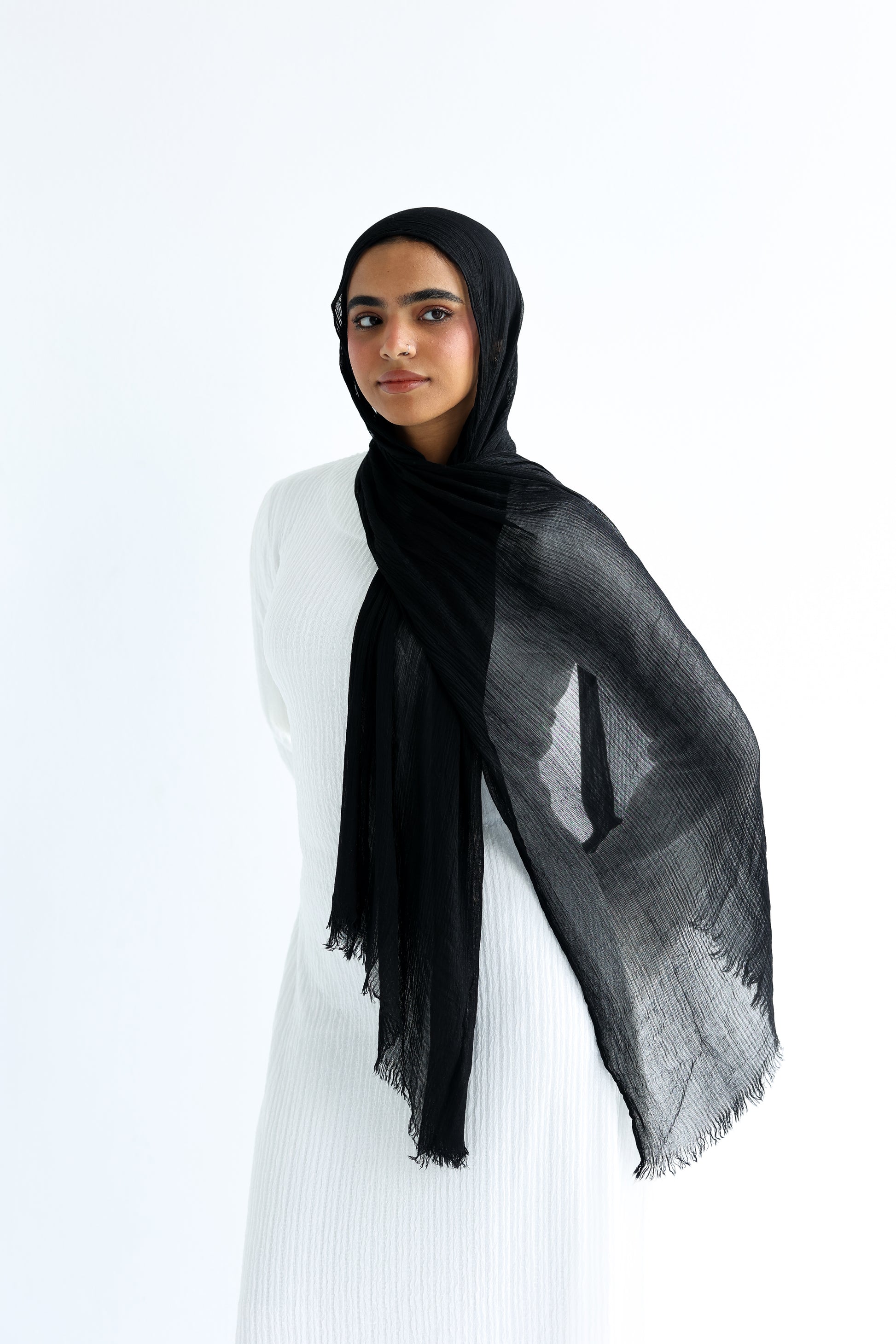 Made from a premium chiffon, these scarves bring together the crisp lightness of linen with the soft, airy drape of chiffon. Effortless, versatile, and timeless, designed to move with you from day to night.